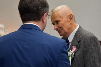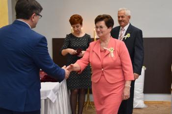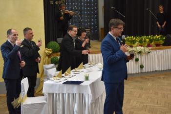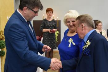 Niech dzisiejsza uroczystość będzie więc świętowaniem trwałości, która nie rodzi się ot tak, z niczego, ale jest efektem codziennej pracy nad sobą i nad naszymi relacjami. Razem z tymi słowami, łączę najserdeczniejsze życzenia – jeszcze wielu wspólnie przeżytych lat".