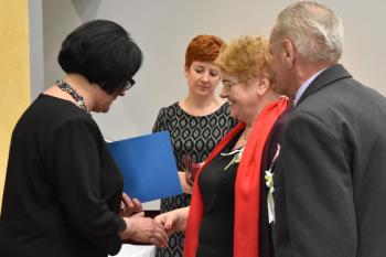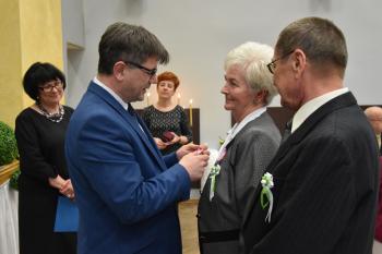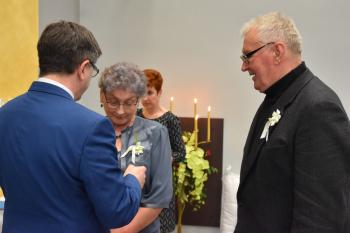 Z tym większym szacunkiem i podziwem patrzę dziś na zgromadzonych tu jubilatów. Państwa miłość i zaangażowanie w budowanie wspólnej rzeczywistości świadczą o tym, że mimo wszystko – mimo kierunków, jakie wyznacza współczesny świat – warto dbać o to, co łączy nas z najbliższymi.