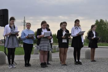 Uczennice Szkoły Podstawowej w Brzezince przedstawiły program artystyczny przygotowany pod opieką Beaty Herman i Katarzyny Siutaj. Partiotyczne pieśni przeplatały się w nim ze strofami poniosłych wierszy. W rzeczowym, kronikarskim opisie wydarzeń uderzające były ustalenia historyków ukazujące skalę przymusowych wysiedleń. W finale występu zabrzmiała ballada do muzyki Michała Buska z przejmującym refrenem: