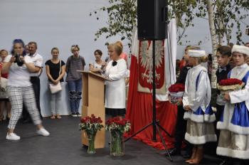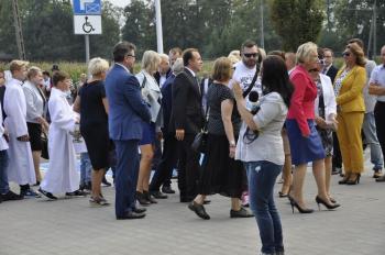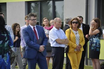 Uroczystego przecięcia wstęgi dokonali wójt Albert Bartosz, kurator Barbara Nowak, Tomasz Czubek, Maria Brombosz, Piotr Śreniawski oraz przedstawicielki Rady Rodziców i uczniów SP w Porębie Wielkiej. Następnie wójt Bartosz odsłonił jeszcze pamiątkową tablicę przy wejściu do szkoły.