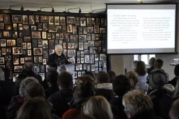 W budynku tzw. centralnej Sauny o historii Sonderkommanda i buntu więźniów tego oddziału opowiedział historyk Centrum Badań Muzeum Auschwitz dr Igor Bartosik: