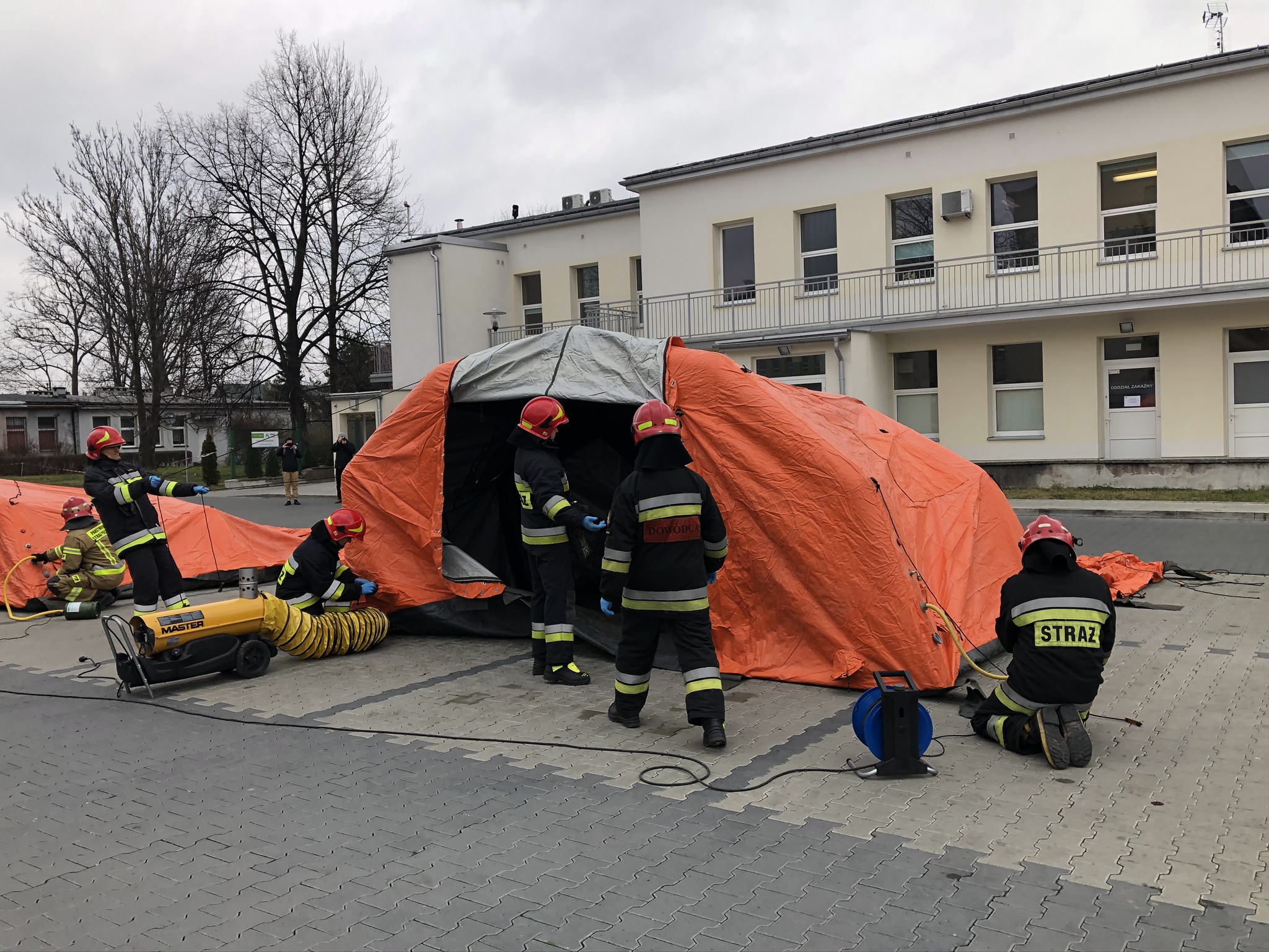 Szpitale mogą te zmiany wprowadzić w oparciu o namioty przygotowane przez Państwową Straż Pożarną lub inne dostępne środki techniczne.