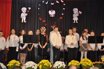 Była to już ósma edycja patriotycznego spektaklu „Niepodległość Pieśnią Opowiedziana”. Widowiskowy koncert, który po wspólnym odśpiewaniu Mazurka Dąbrowskiego i Roty rozpoczęła pieśń Jana Pietrzaka „Żeby Polska była Polską”, prowadziła była dyrektor Szkoły Podstawowej w Porębie Wielkiej - Małgorzata Bucka.