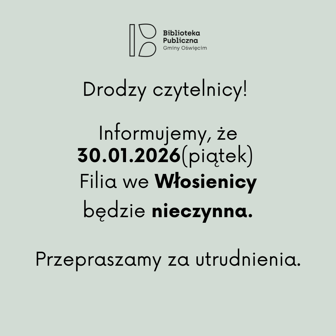 Informujemy, że Filia we Włosienicy będzie nieczynna w dniu 30.01.2026.