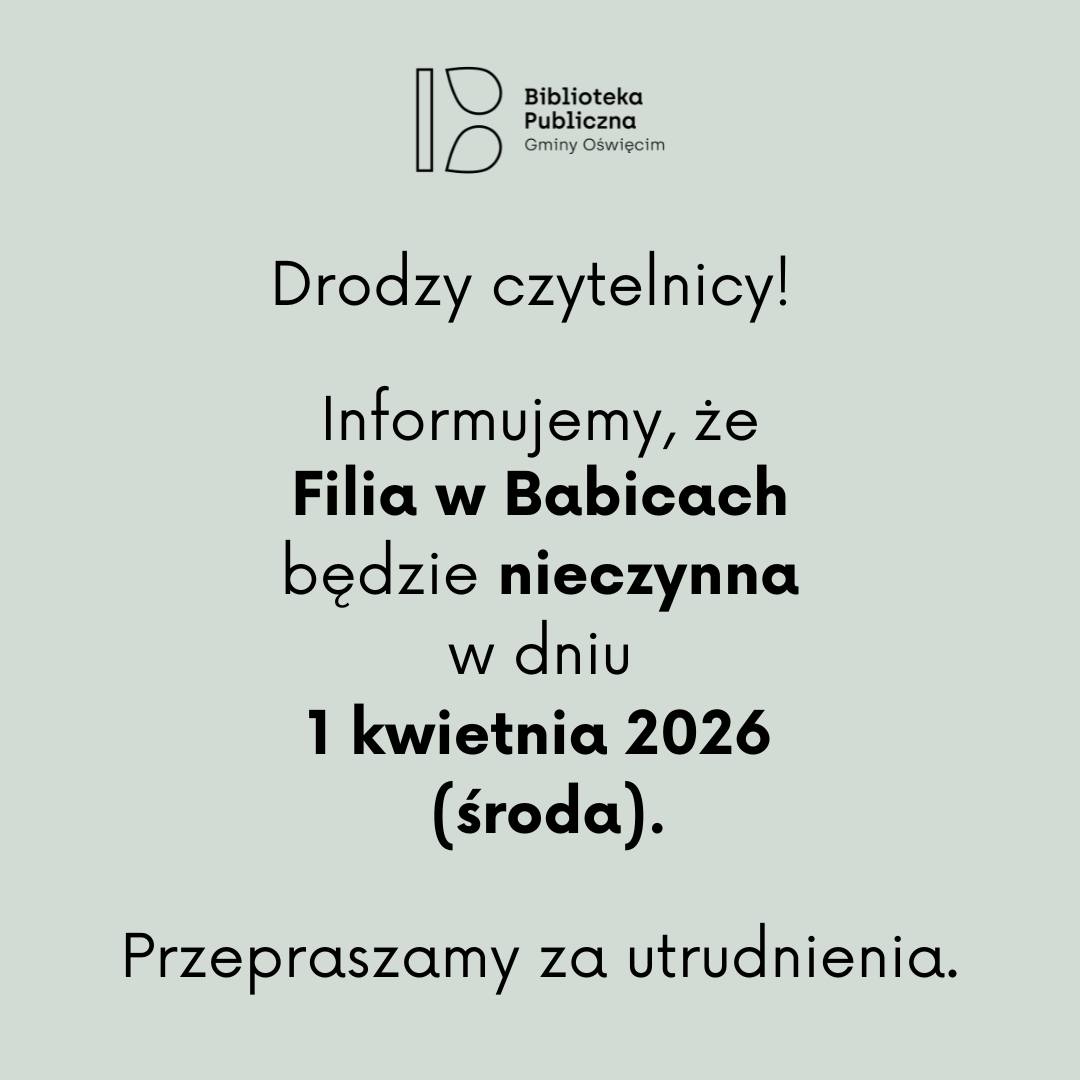 Informujemy, że Filia w Babicach będzie nieczynna w dniu 1 kwietnia 2026.