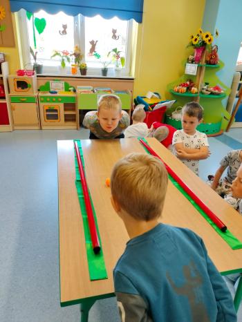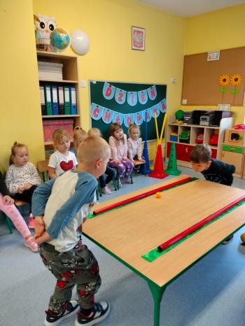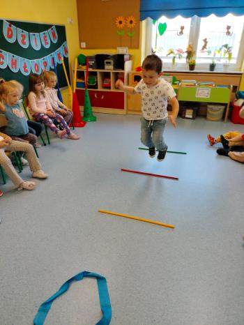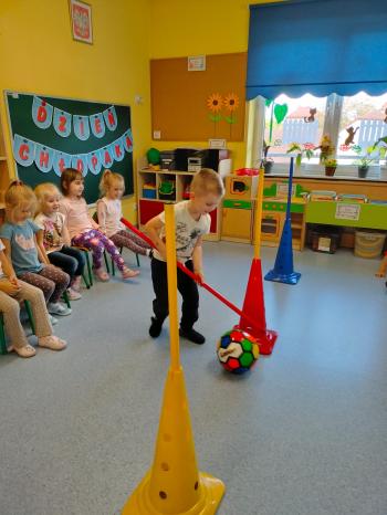 Dzień chłopaka w grupie ,,Biedronek” upłynął w sportowej atmosferze. Chłopcy z wielkim zaangażowaniem pokonywali postawione przed nimi zadania, a dziewczynki dopingowały głośno, co mobilizowało kolegów do precyzyjnego i szybkiego wykonywania poszczególnych ćwiczeń. Każdy z nich udowodnił, że potrafi świetnie się bawić i jest w dobrej formie fizycznej.